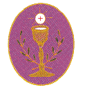 Capuz granate. Guantes blancos. Túnica morada con cordones amarillos. |