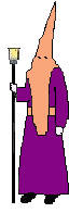 Capuz y fajín beige. Túnica morada. Guantes blancos. |
