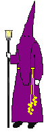 Capuz y túnica morados. Guantes blancos. Cordones amarillos. |