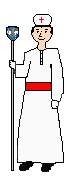 Túnica blanca. fajín granate. |