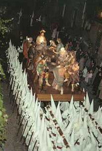 PROCESION DEL SILENCIO En la procesión del Silencio que se desarrolla el Miércoles Santo es donde desfila la Venerable Hermandad de la Santa Cena. La presidencia ejecutiva de la misma le corresponde a la Venerable Hermandad del Prendimiento de Jesús por ser la más Antigua. Hermandades que componen la procesión: Venerable Hermandad de la Santa Cena. Venerable Hermandad de Jesús Orando en el Huerto (de San Esteban). Venerable Hermandad del Prendimiento de Jesús (Beso de Judas). Venerable Hermandad Religioso-Benéfica de San Pedro Apostol. Venerable Hermandad de la Negacion de San Pedro. Venerable Hermandad del Santísimo Ecce-Homo (de San Miguel). Venerable Hermandad de la Santísima Virgen de la Amargura con San Juan Apóstol.